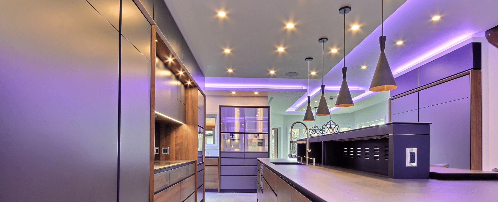 L’éclairage intégré révèle les matériaux, optimise les zones de travail et crée des contrastes élégants qui mettent en valeur le design.