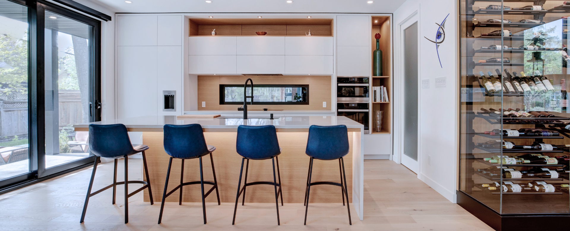 Grâce à une prise de mesure au laser ultra précise, les comptoirs sont fabriqués d’avance et installés en même temps que les armoires. Résultat : aucun délai entre la menuiserie et la finition. Pas de va-et-vient supplémentaire, pas de chantier qui s’éternise.