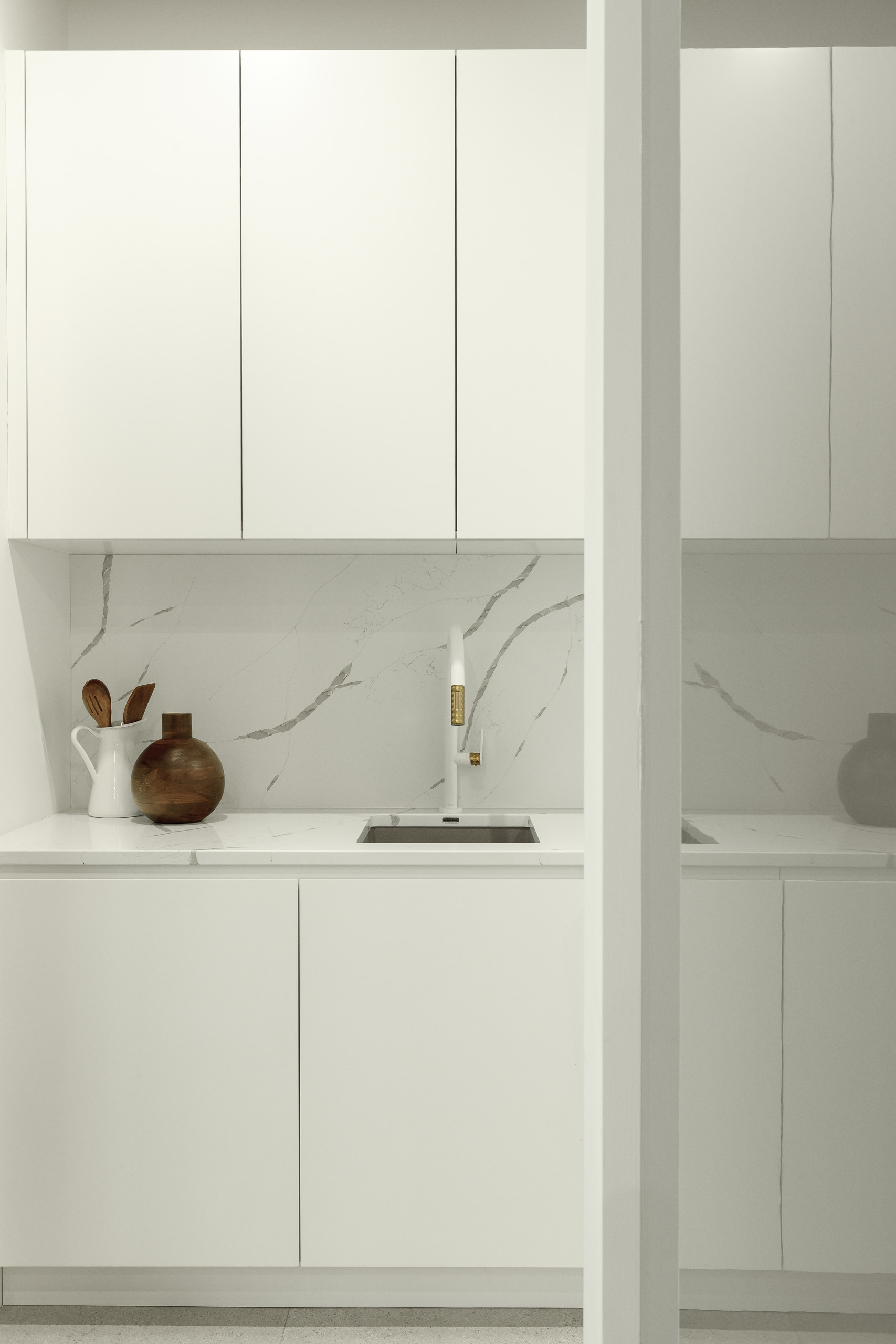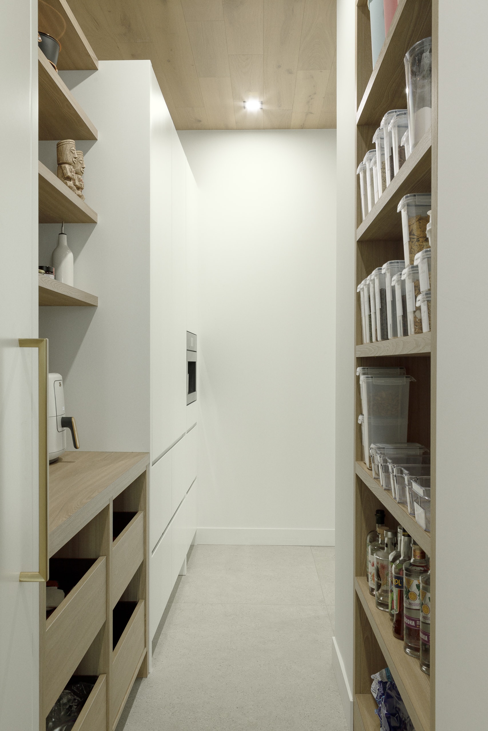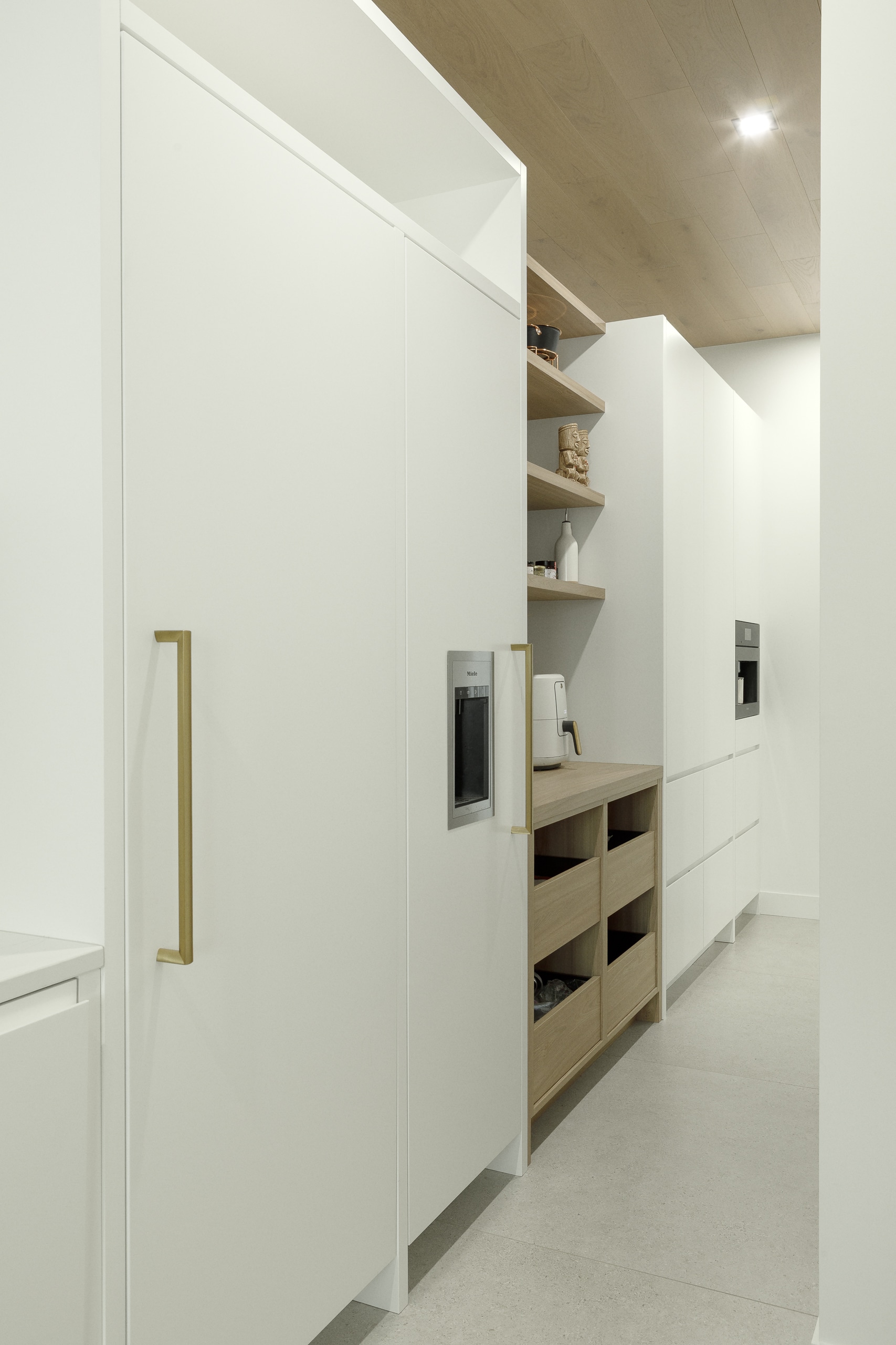 On a aussi développé une arrière-cuisine complète, pensée comme un soutien stratégique à l’espace principal. Deuxième lave-vaisselle, électros secondaires, zones de préparation : tout est organisé pour que la cuisine reste belle et efficace, même quand on a beaucoup de préparation à faire.