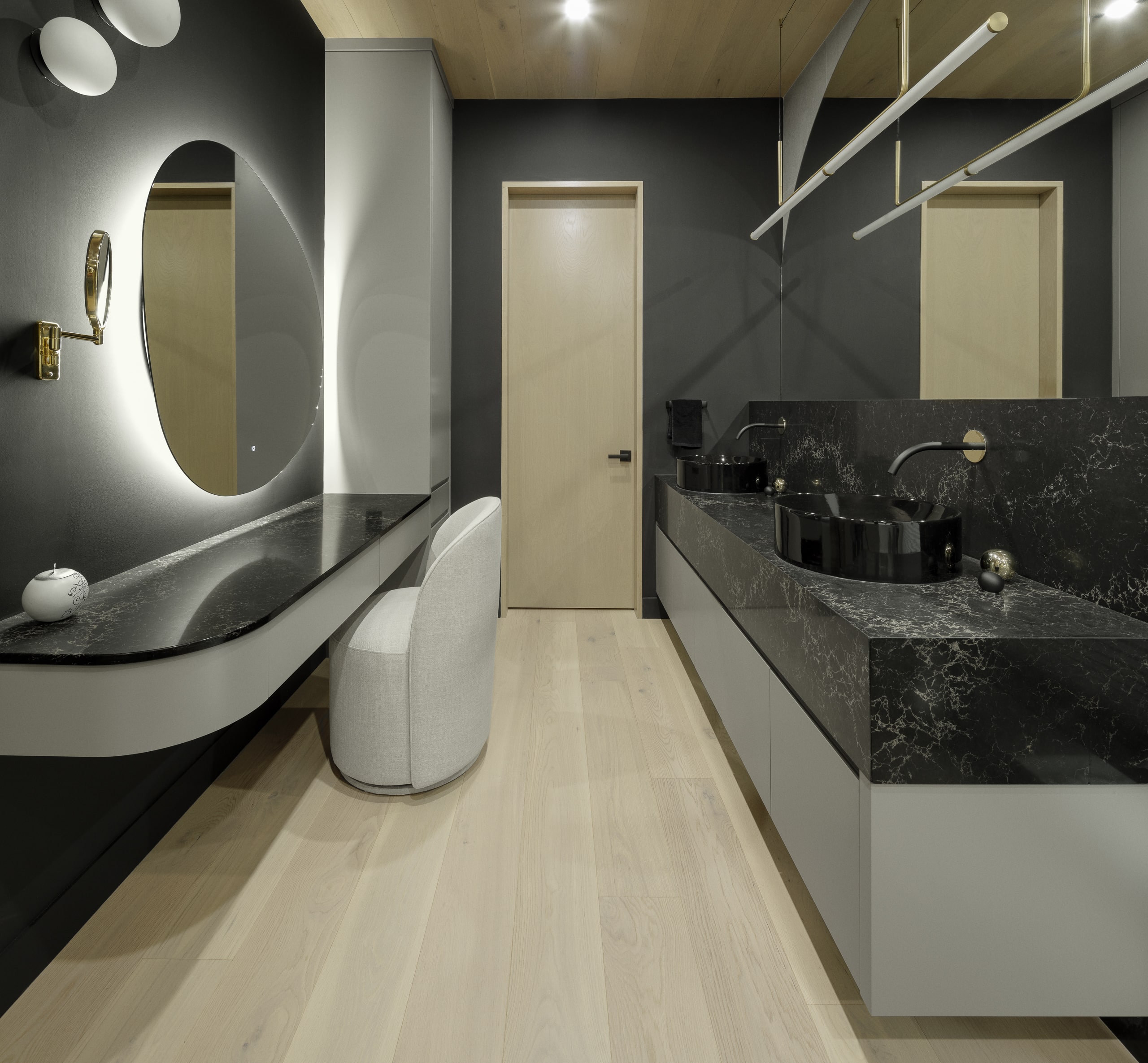 Chez Richard & Levesque, la salle de bain n’est jamais traitée comme une pièce secondaire. Elle s’intègre à un projet multipièces global où chaque pièce partage la même signature esthétique, les mêmes matériaux nobles et le même souci du détail.